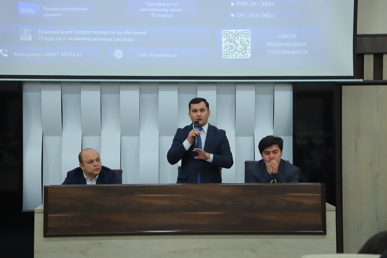В целях обеспечения практической направленности и экспертной поддержки к участию был приглашён главный специалист отдела развития инновационной экосистемы и поддержки стартап-проектов Агентства инновационного развития — Шукуров Самандар, который представил рекомендации по структурированию проектов, механизмам их сопровождения и возможностям дальнейшей институциональной поддержки.