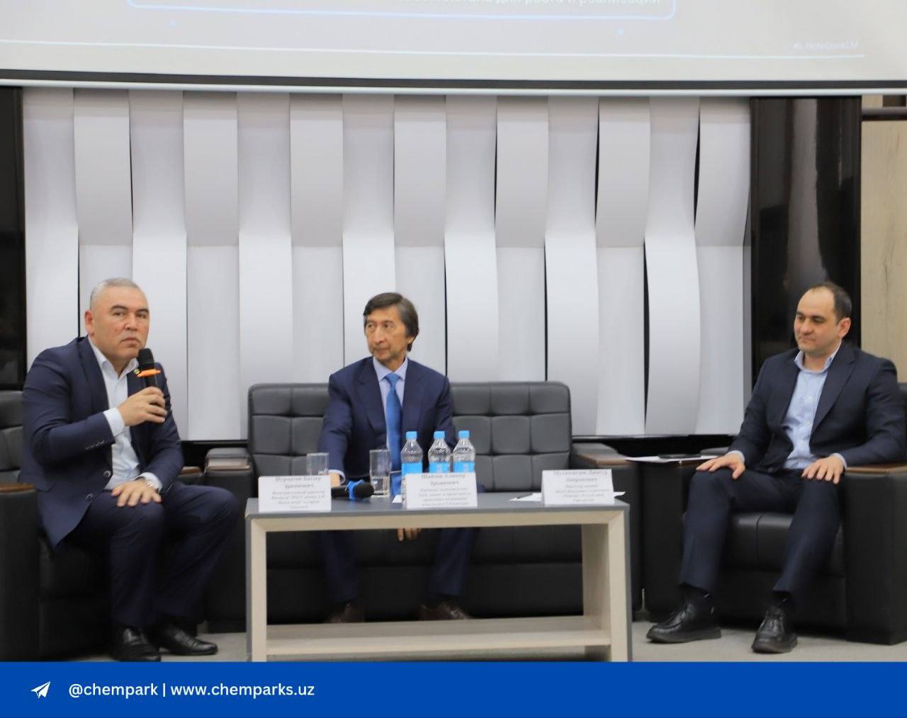 В мероприятии приняли участие исполнительный директор филиала Ботир Нурматов, международный эксперт и председатель правления Ассоциации менеджеров Узбекистана Алишер Шайхов, а также директор химико-индустриального технопарка «Чирчик» Республики Узбекистан Мухаммедов Джасур Давронович.