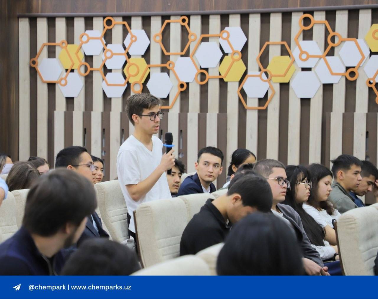 Джасур Мухаммедов рассказал студентам о возможностях практической реализации инновационных идей на базе технопарка «Чирчик», перспективах сотрудничества с промышленными предприятиями, а также о возможностях прохождения практики и дальнейшего трудоустройства молодых специалистов.