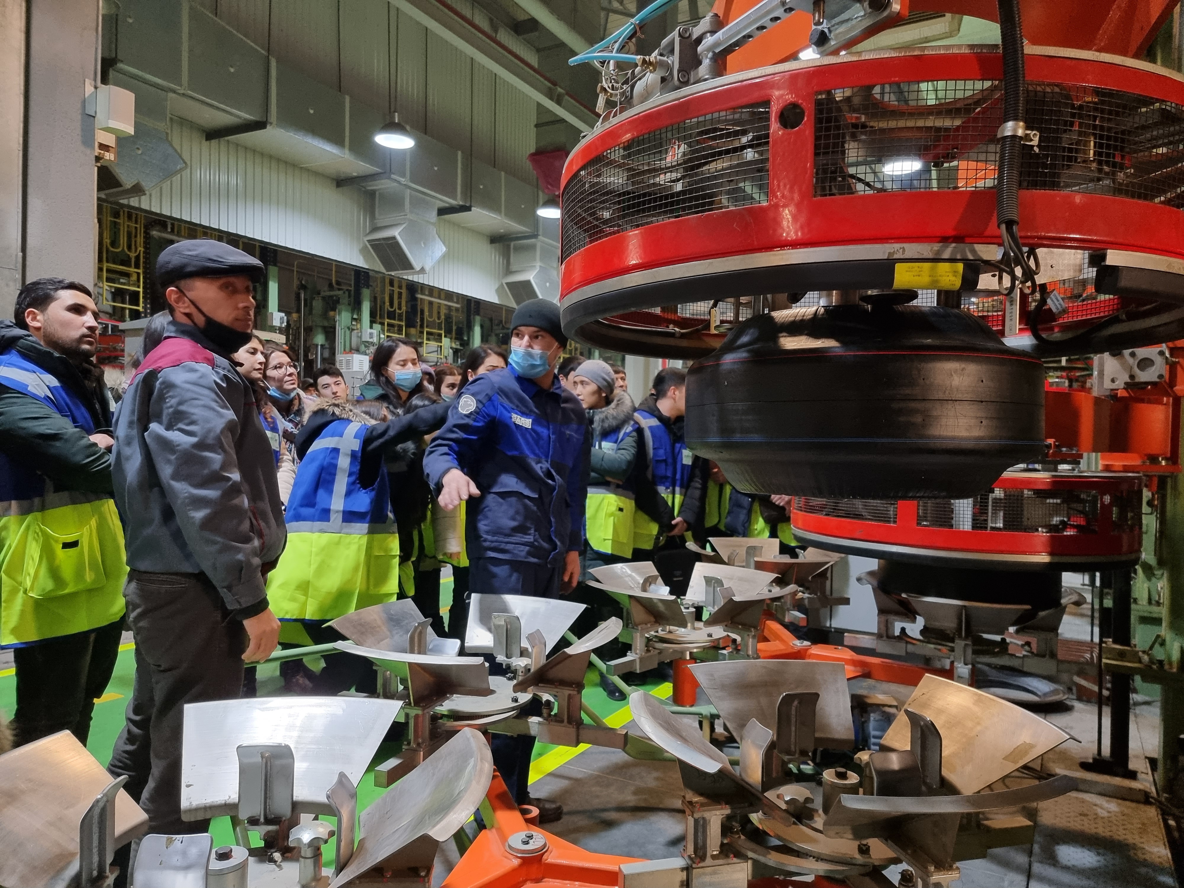 Сотрудники научно – технического центра (НТЦ) и научно-проектного центра ООО «Биринчи резинотехника Заводи» ознакомили студентов с инновационными разработками и перспективными планами. Студентов филиала ознакомили с технологией проектирования протекторов шин, разработкой ломелей и рецептами резиновых смесей. Вопросы к ведущим специалистам НТЦ были самые разнообразные: из чего состоят смеси для шин, почему протекторы имеют такой вид и насколько это важно в дальнейшей эксплуатации, в какой компьютерной программе работают конструкторы и т.д. На все вопросы студенты получили исчерпывающие ответы.