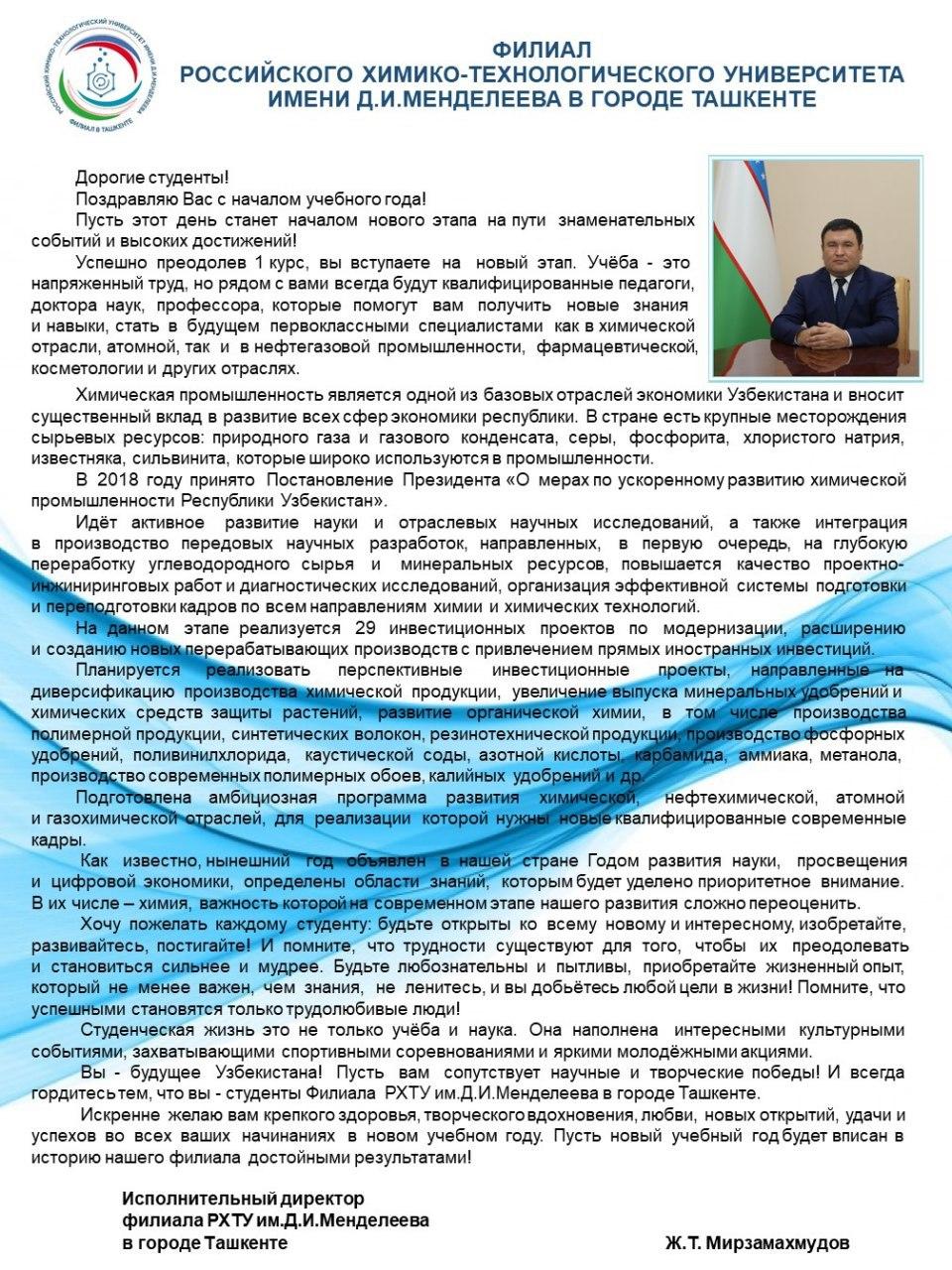 D.Mendeleev University of Chemical Technology of Russia in Tashkent