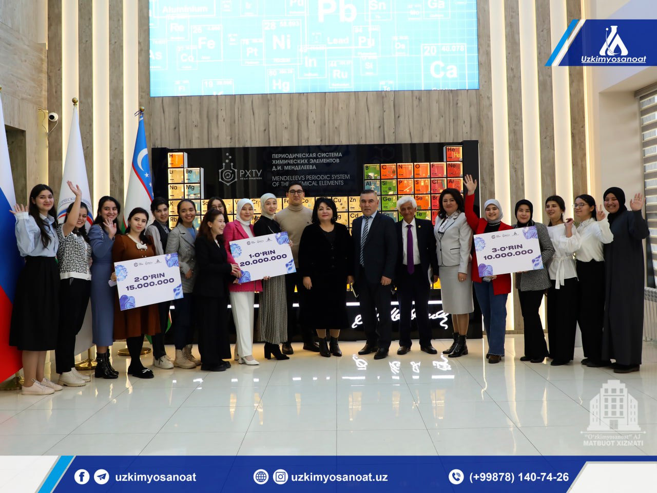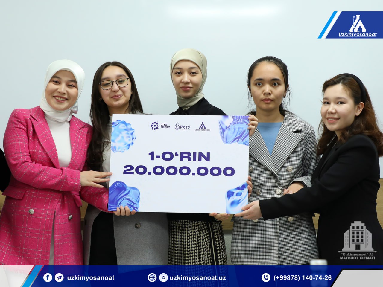 “Oʻzkimyosanoat” AJ, “Ziyo forum” ilm-fan va taʼlim-tarbiyani rivojlantirish Xalqaro fondi hamda D.I.Mendeleyev nomidagi Rossiya kimyo texnologiyalari universiteti Toshkent shahridagi filiali bilan hamkorlikda talaba qizlar uchun kimyo fani boʻyicha olimpiada tashkil etildi.