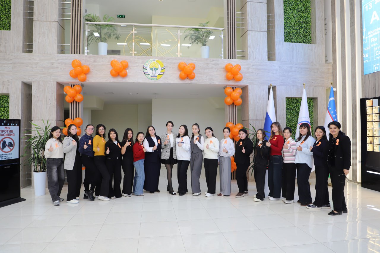 Студенческий клуб «Qizlarjon» выступил инициатором акции, в рамках которой девушки прикрепляли оранжевые ленточки — международный символ поддержки и солидарности с пострадавшими.