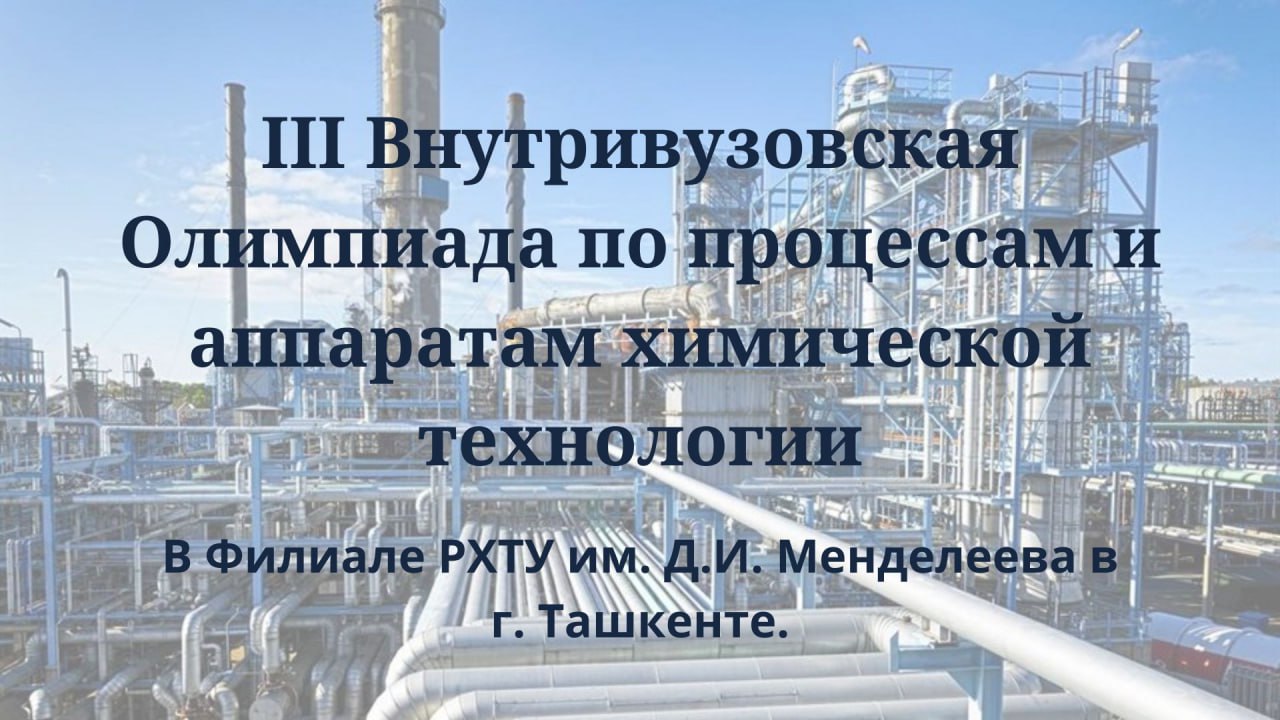 Приглашаем вас принять участие в III Внутривузовской Олимпиаде по процессам и аппаратам химической технологии, которая состоится 27 марта 2024 года в 9:00 в Филиале РХТУ им. Д.И. Менделеева в г. Ташкенте.