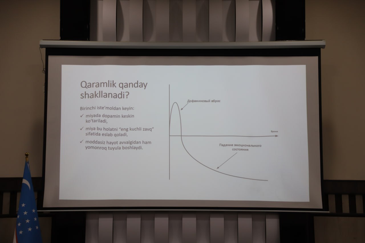 В целях обеспечения исполнения пункта 30.5 Указа Президента Республики Узбекистан № ПФ-207 от 3 ноября 2025 года «О комплексных мерах по эффективной защите здоровья населения и генофонда нации от наркомании и наркопреступности» в Филиале Российского химико-технологического университета имени Д.И. Менделеева в городе Ташкенте была проведена профилактическая встреча со студентами.