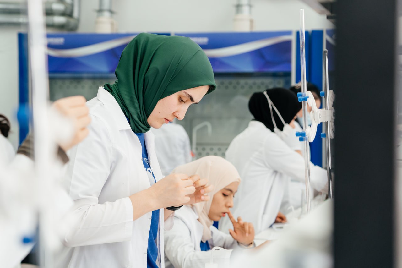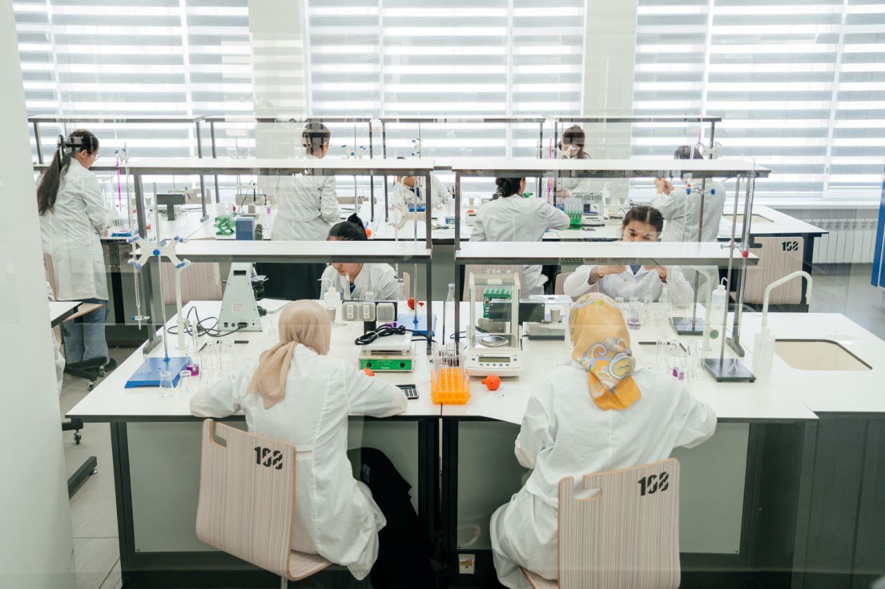 🔬 В этом этапе участвовали студентки, успешно прошедшие тестирование, и соревновались в выполнении лабораторных работ по химии.