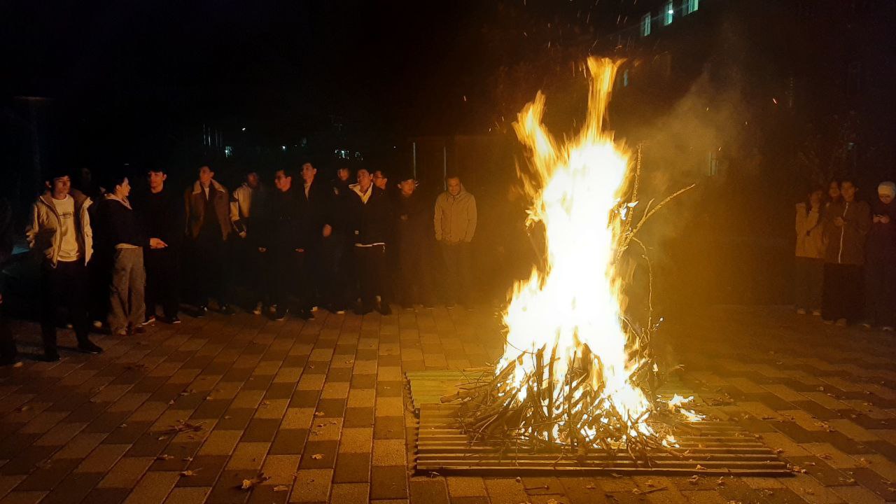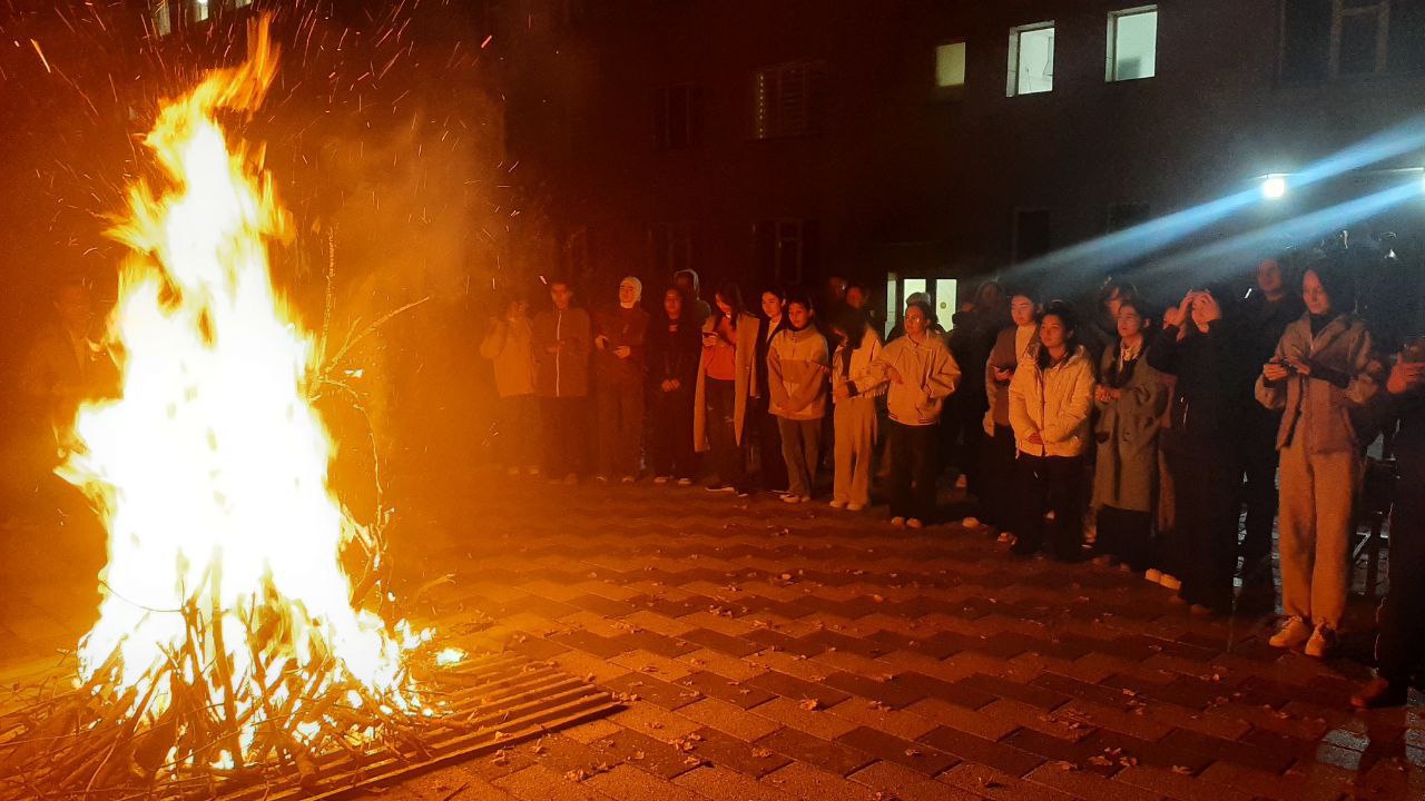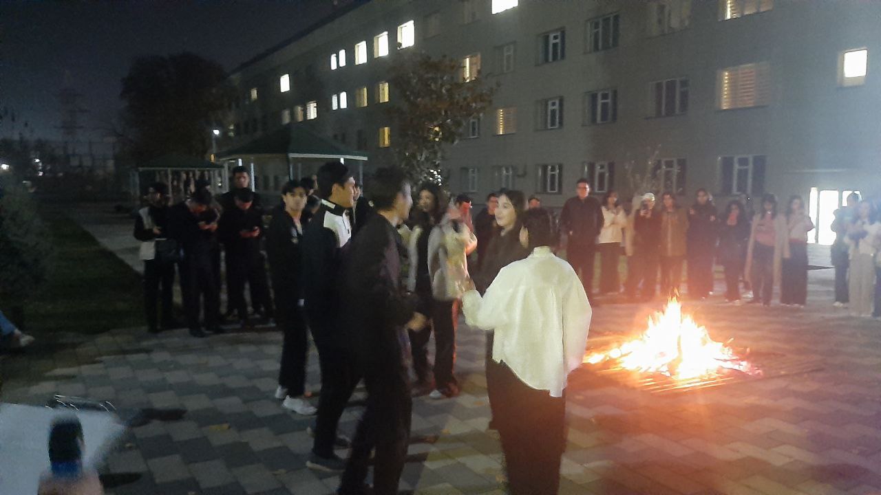 Особенность этого вечера в том, что вместе с нашими студентами в общежитии живут и ребята из Университета мировой экономики и дипломатии, и они тоже активно приняли участие в программе. Музыка, стихи, мини-выступления и просто живое общение у огня сделали вечер по-настоящему атмосферным.