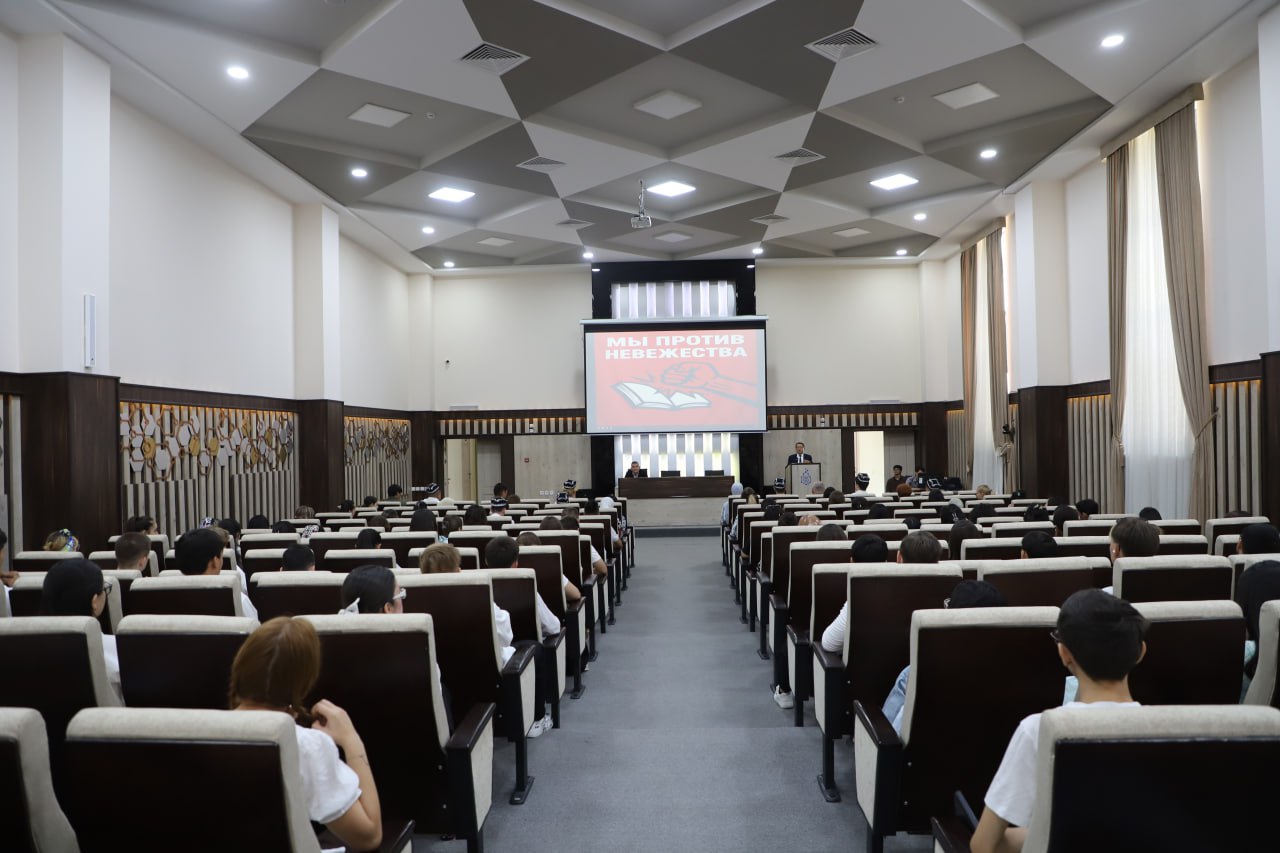 В 11:00, в актовом зале филиала прошло значимое мероприятие, посвящённое вопросам духовного развития и роли образования в современном обществе. Темой встречи стало «Просвещение против невежества» — актуальный и глубокий разговор о важности знаний, культуры и просветительской миссии.