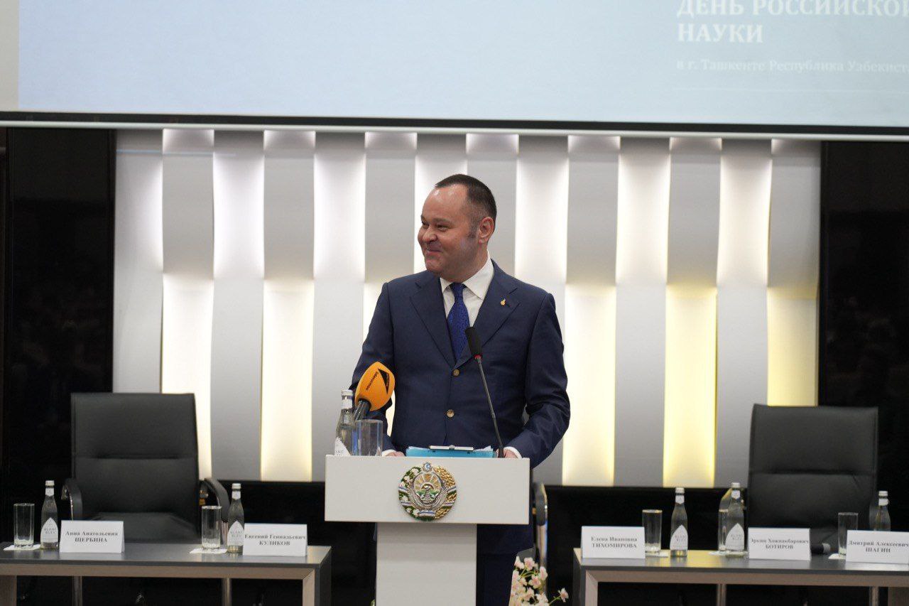 🇺🇿🇷🇺 Мероприятие началось с приветственной речи Олега Мальгинова, посла Российской Федерации в Республике Узбекистан, и словами Константина Могилевского, заместителя Министра науки и высшего образования Российской Федерации. И после торжественного прозвучания гимнов Узбекистана и России, мероприятие объявлено открытым.