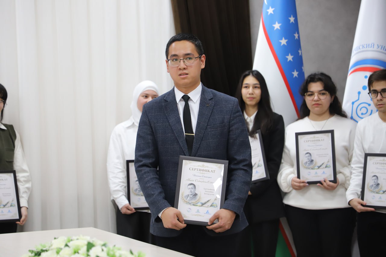 По итогам конкурсного отбора 12 студентов утверждены в статусе стипендиатов. Размер именной стипендии составляет 700 000 сумов в месяц, выплата осуществляется в период с декабря 2025 года по июнь 2026 года.